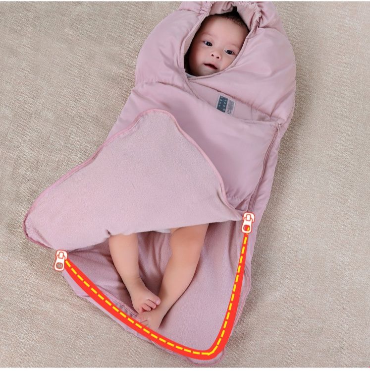 ベビーカーに直接取り付けられる子ども用シュラフです。 頭部から足先までしっかり包み込む設計で、寒い季節のお出かけも安心です。 ふっくらとした中綿入りで保温性に優れ、ベビーカーのフレームに固定できるため移動中もずれにくく快適に使用できます。 赤ちゃんの体を優しく守る柔らかな素材を使用し、秋冬の外出時に最適なアイテムです。