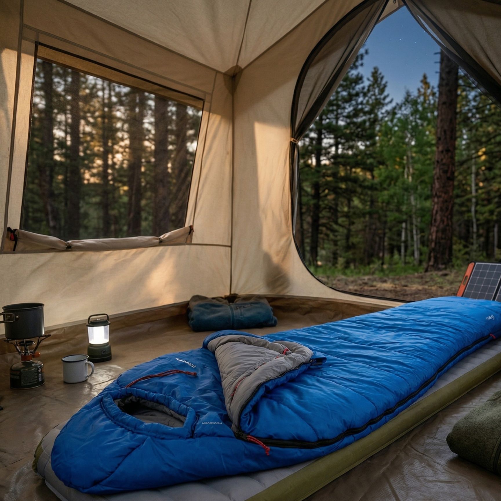 オールシーズン対応のシュラフで軽量性と保温力を両立。