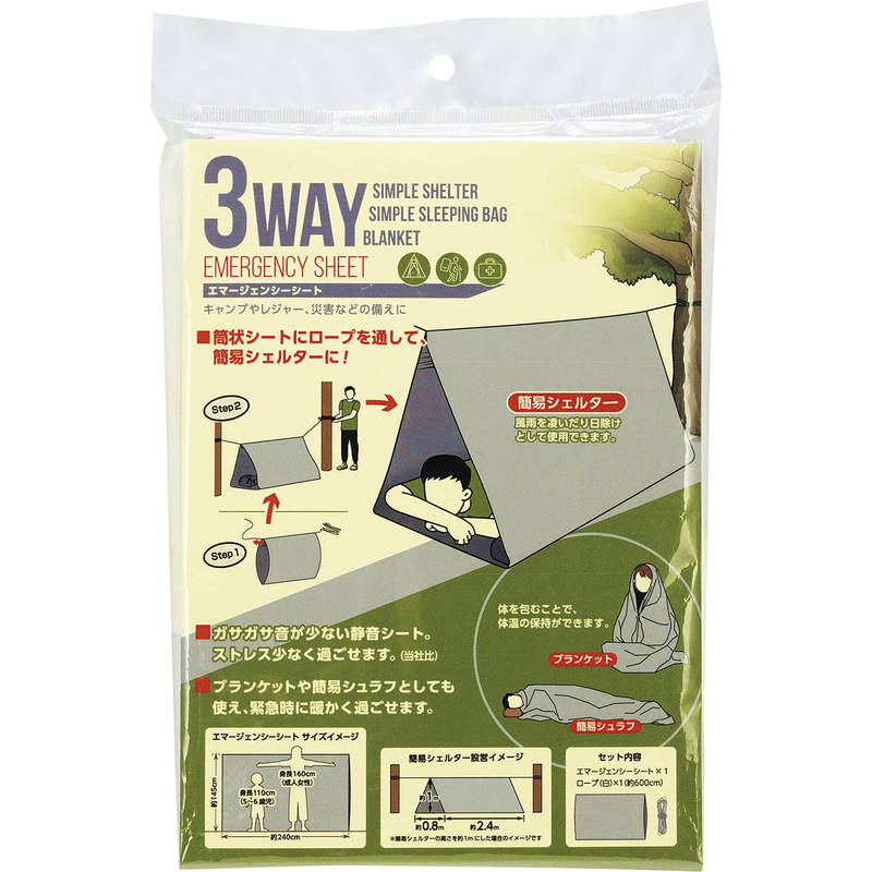筒状にしてロープを通せば簡易シェルターとして風雨や日差しを防げます。