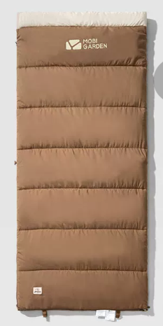 キャンプ用に最適な封筒型シュラフで、二つを連結して二人用としても使える便利な設計です。