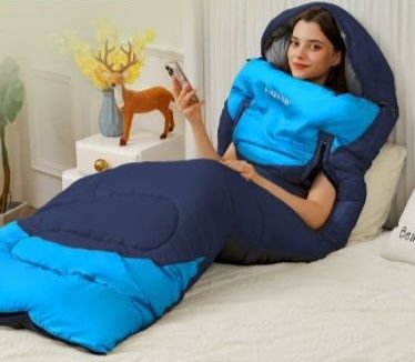 袖を通せる構造により寝袋に入ったまま携帯操作や読書が可能で、室内外問わず多目的に活用できます。