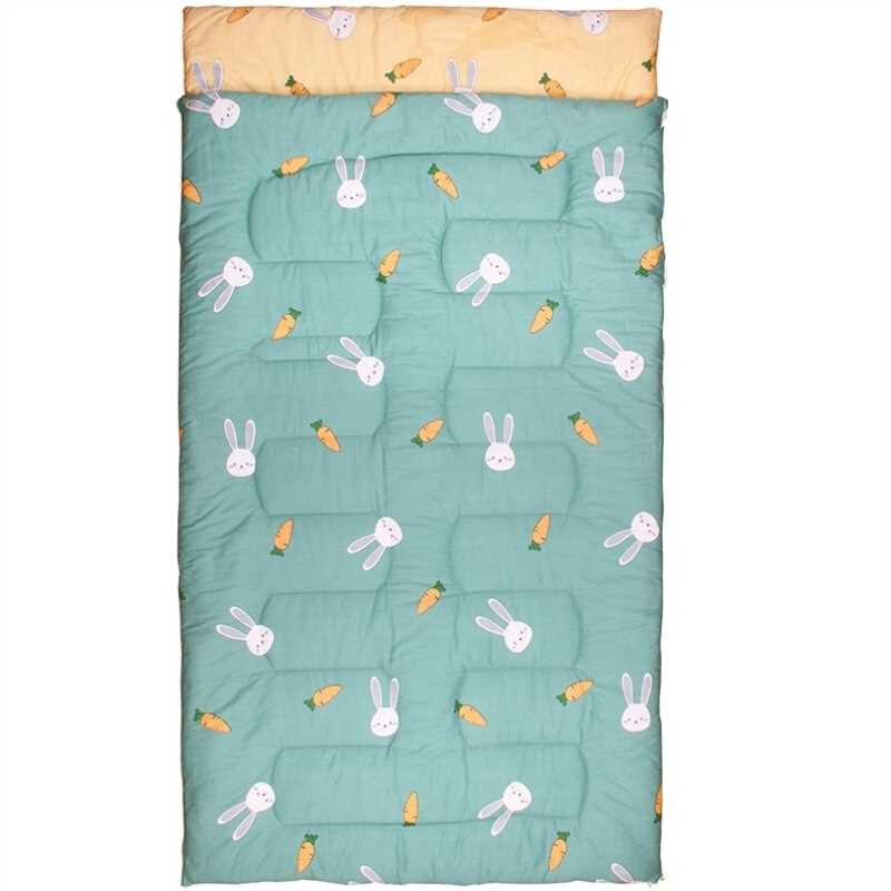 かわいいうさぎと人参をあしらった子供から大人まで使えるキャンプ用シュラフです。