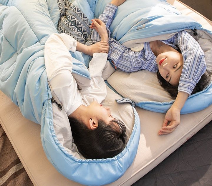家族や仲間と一緒に使える連結可能なキャンプ用シュラフです。